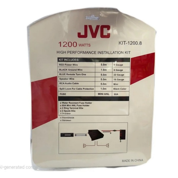 برند: JVC (با لوگوی LVC) مدل: KIT-1200.8 توان: 1200 وات نوع: کیت نصب حرفه ای (High Performance Installation Kit)